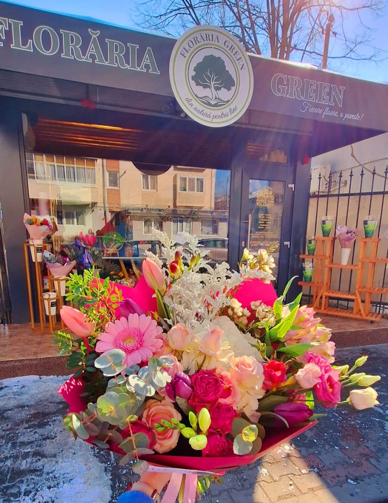 Pretul produsului pe care l-ati ales din Florăria Green poate include o felicitare cadou, pe care vom scrie caligrafic textul ales de dumneavoastra. Serviciul de livrare flori este gratuit in Focșani și functioneaza prin curieri proprii, astfel incat florile sa ajunga in stare perfecta la destinatarul ales. In functie de stoc si de sezon, produsele pot suferi mici modificari. Comanda acum in Focșani, flori cu livrare gratuita! Produsele pot suferi modificari (tipul florilor, cutiile, ambalajele, alte materiale componente), in functie de stocul existent. După plasarea unei comenzi, ne puteți suna pentru stabilirea detaliilor. Simplu si frumos!